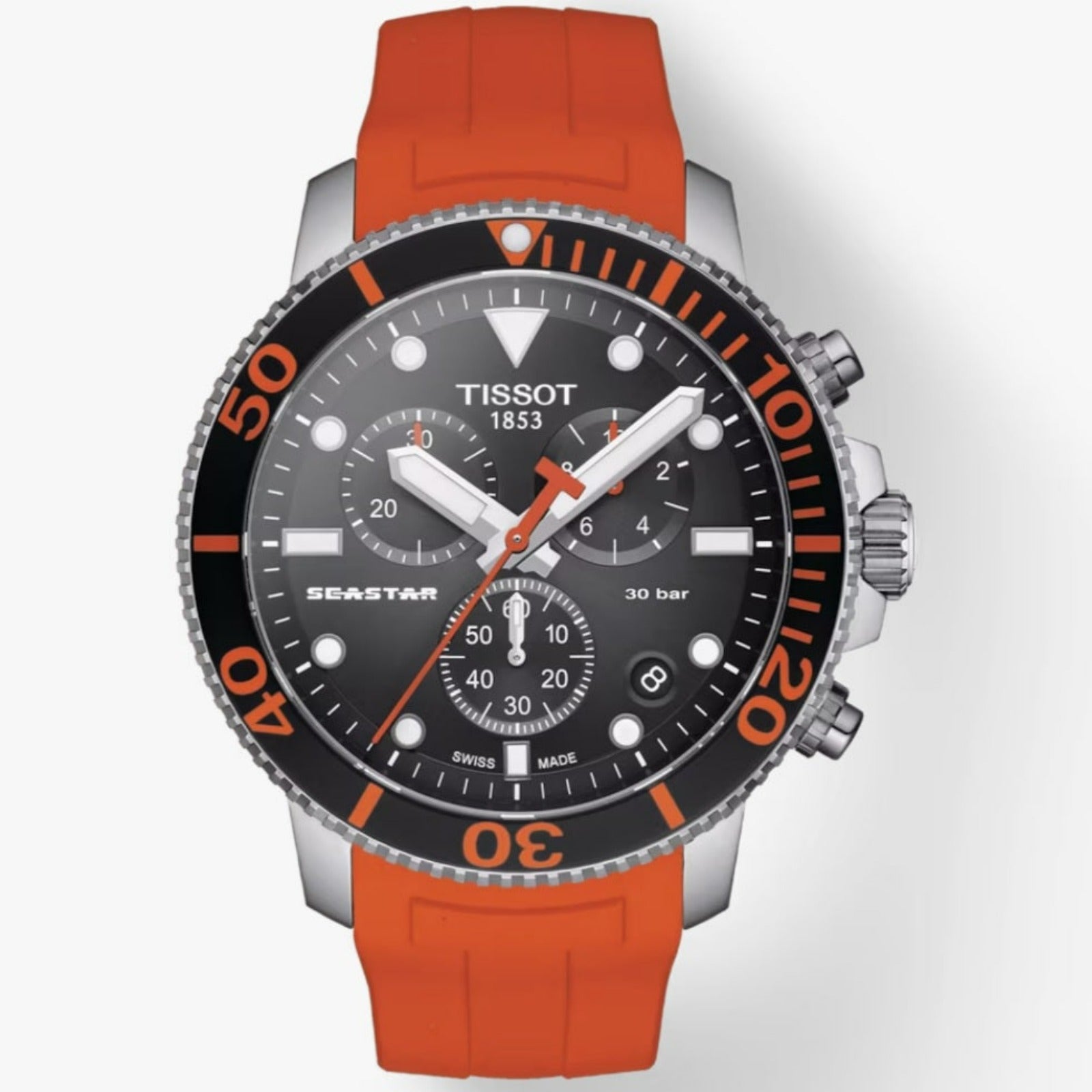 • The Tissot Seastar 1000 merges style and performance without compromising either. The diving inspiration shapes both the appearance and the functionality of this watch. It maintains its performance to a pressure of 30 bar (300m/1'000ft), combining underwater sports and a preference for a sophisticated Swiss timepiece. The diving theme continues through elements such as a unidirectional bezel, a strap with a divers' safety buckle, plus luminescent hands and markings.